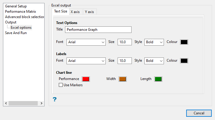 This section to specify a title for the resulting Excel chart, as well as configure the font settings for the title text, that is, the font type, font size, font style (normal, bold, italics, or bold italics) and font colour.
