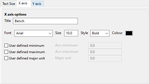Use this section to manually define the range of the axis. If these fields are left blank, then Vulcan will find the minimum and maximum from the data.