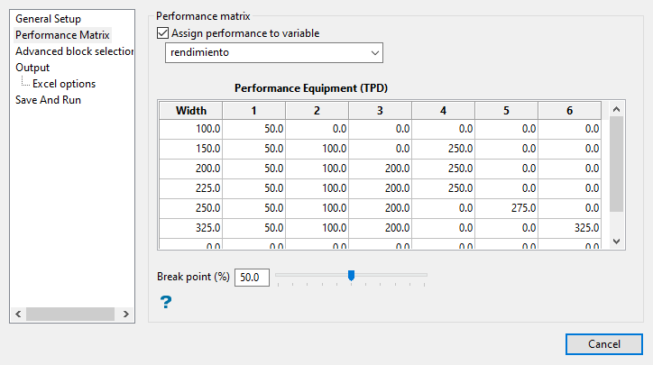 180', and the break point is '50', then Vulcan will assign a value of 210 to the nominated performance variable.Advanced block selection