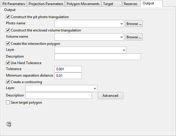 Select this checkbox to generate a pit photo triangulation. The photo surface is a new topography that will be created by mining the new pit design.