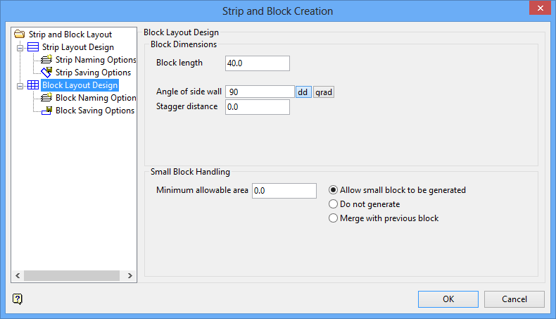 Strip and Block Layout - Block Layout Design panel