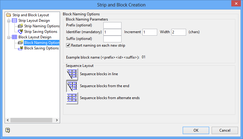 Strip and Block Layout - Block Naming Options panel