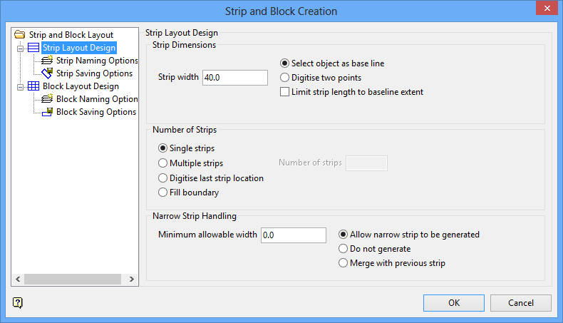 Note Once the strips/blocks are generated, they will lie on the 'left hand side' of the baseline, so you will need to select the appropriate end of the baseline.