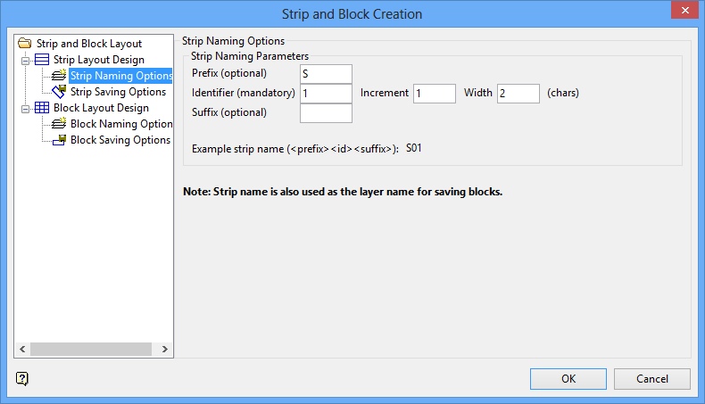 Strip and Block Layout - Strip Naming Options panel