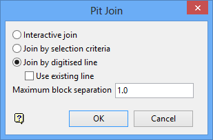 Select this option to join all adjacent blocks that intersect a digitised line. Once the Pit Join panel has been completed, you will be required to digitise the line that intersects the block(s).