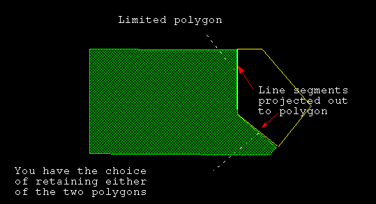 Select the end point. Once the end point has been selected, the two possible limited polygons are displayed (one will be highlighted). You will then be asked whether the highlighted polygon is the one to be limited, or the other one.