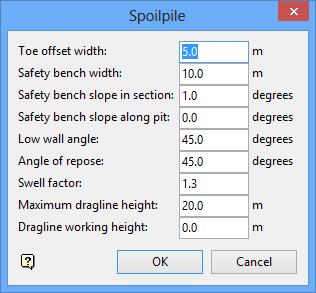 On the Open Pit menu, point to Pit Volumes, then click Dragline Spoil.