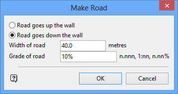 Select this option if the road is started from the base of the pit and project up. If the road is not started from the base, then select the Road goes down the wall option.