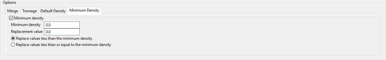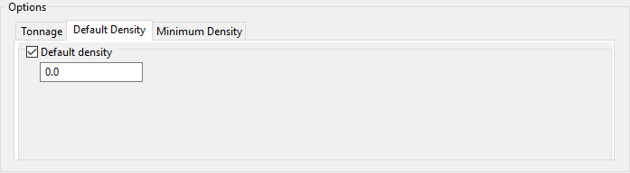 Use this option to replace the density block model variable with default values. Enter a default density value instead of calculating the value.