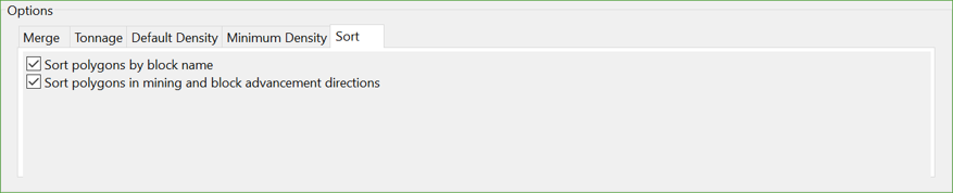 - Sort polygons in mining and block advancement directions- Use this option to ensure that the blocks for automatically created polygons follow the xy sequence accurately.
