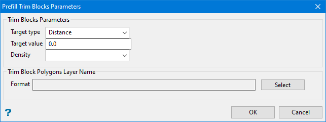 The Prefill Trim Blocks Parameters subpanel is displayed. Enter the Target Type, Target Value and Density.