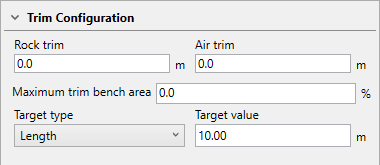 Enter a Target value. This is the dimension of the trim solid that runs parallel to the bench crest/toe. By default, this is set to 10, but can be edited by entering a new value.
