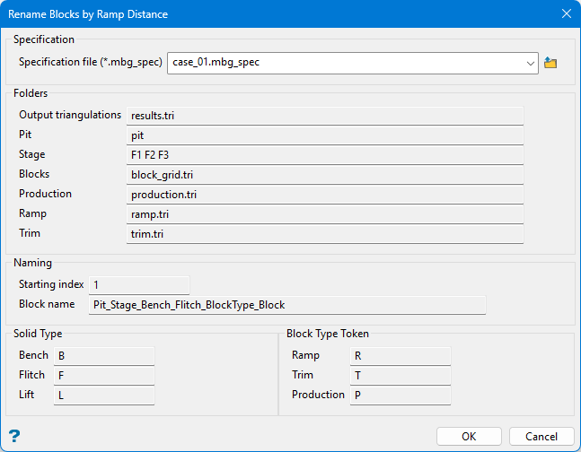 On the Open Pit menu, point to Schedule Solids, then click Mining Blocks Rename Blocks by Ramp Distance.