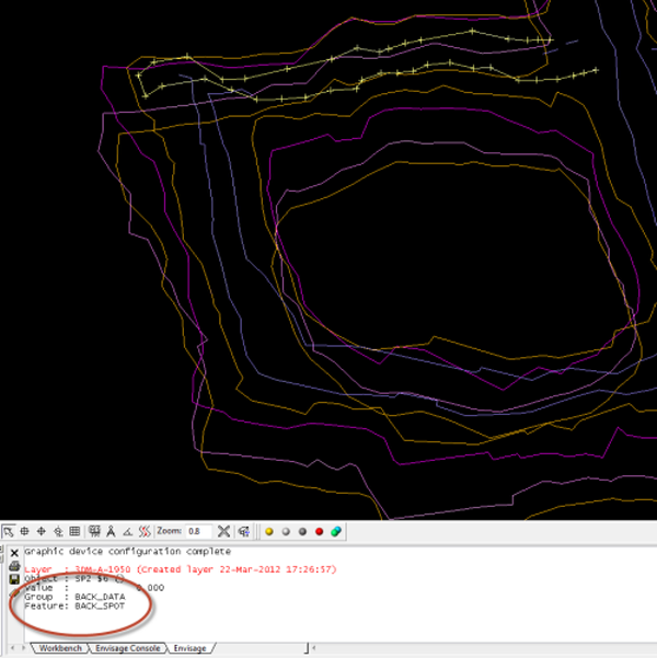 - For a pillar object, identify the line group with the most spot height lines. To identify which group a line belongs to, click Design > Layer > Identify. In this example, the Back group contains the most spot height lines.