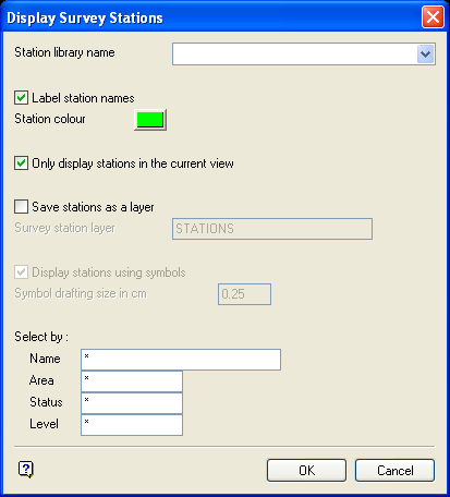 The Display Stations option to display the survey stations that are in a nominated survey station library.