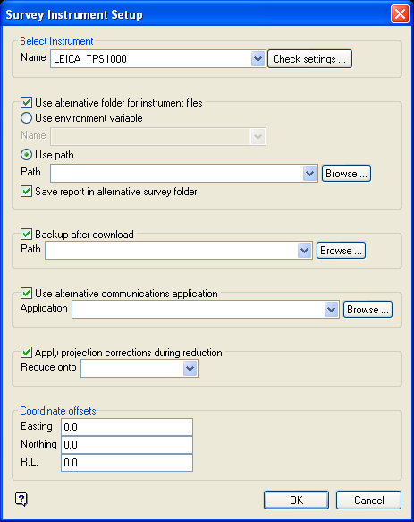 The Survey Data Information panel is then displayed for verification purposes. The parameters, such as instrument and survey directory, are stored in the <proj>envis.defaults file. This means that the next time this panel displays the information is retained.