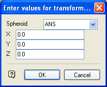 Select the reference spheroid (also referred to as an ellipsoid) that will be used for the conversion. Currently this is set up for ANS (Australian National Spheroid), GRS80 and WGS (World Geodetic System). Contact your nearest Maptek office if you require another reference spheroid.