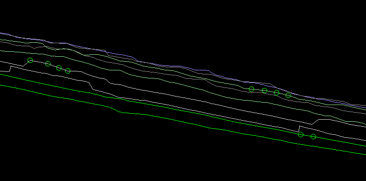 The option checks if there are crossing strings within the back and floor string set. The check will be performed during the creation of the triangulations and a screen-aligned cross will be drawn on the point of intersection between the two segments in question. The colour of the cross can be adjusted from the colour selector.