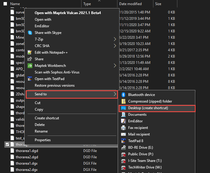 - Right-click to display the context menu, then click Desktop (create shortcut).
