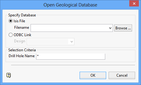 On the Underground menu, point to Analyse, and then click Drill Hole Warning to display the Open Geological Database panel.