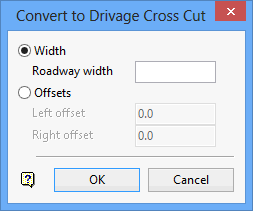 Select this option to create drivage crosscuts as centre lines of the roadway. If this option is selected, then you will need to specify the roadway width.