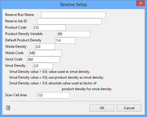 Enter the smut value associated with the Smut Code. This value will be used as the smut density if the value is greater than 0.0; if the value is equal to 0.0, then the product density is used as the smut density; if the value is less than 0.0, then an absolute value is used as a factor of product density.