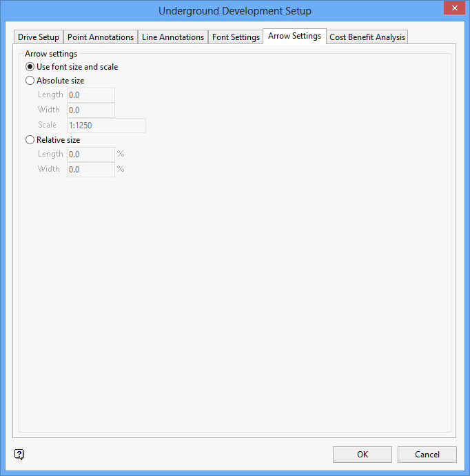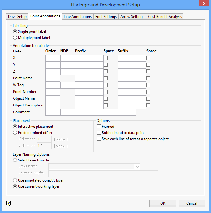 This panel to configure the variables that are to be used when using the Cost Benefits Analysis option (under the Underground > Analyse submenu).