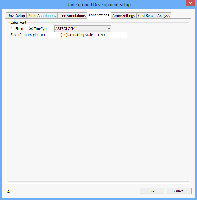 Select this option to use a true type font. Once selected, you will be required to pick a font from the drop-down list. The drop-down list will display all of the true type fonts loaded onto your computer (it is independent of Vulcan). We recommend that you use a true type font when trying to produce a plot that appears exactly the same as the screen display.