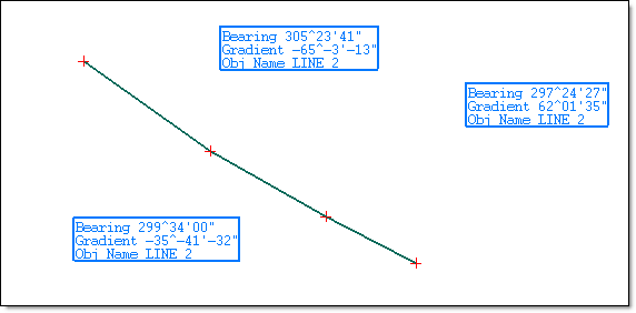 Select this option to report on the length between two nominated points. The average bearing and grade will be included in the resulting annotation block.