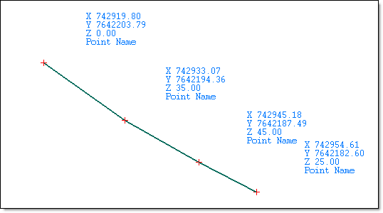 Select this option to report on the total length of the line segments that fall between two nominated points. The average bearing and grade will be included in the resulting annotation block.
