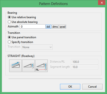 Select this option to create a straight ramp. You will need to specify the distance (the unit of measurement is set in the .dg1 file). The distance can be defined through one of three methods: