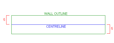 Use Wall Outline to create a wall outline by specifying the width of the walls away from the centreline.