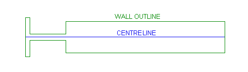 The resulting wall outline is produced as a closed polygon. The polygon is assigned the group name 'WALL_OUTLI'. The new wall outline will inherit the name of the chosen centreline, for example if the centreline's object name is 'LINE$1', then the object name of the new wall outline will be 'LINE$1' as well.