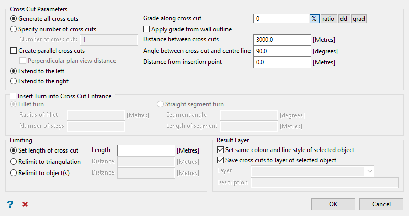 TipIt is good practice to leave the Create parallel cross cuts and Perpendicular plan view distance boxes checked as this will line up the cross cuts correctly even if the main drive is at an angle.