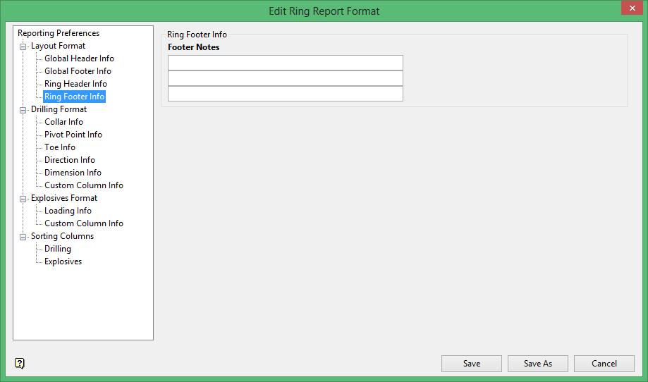 Use Layout Format to configure the contents of the headers and footers for the report as a whole, and for the ring section of the report.