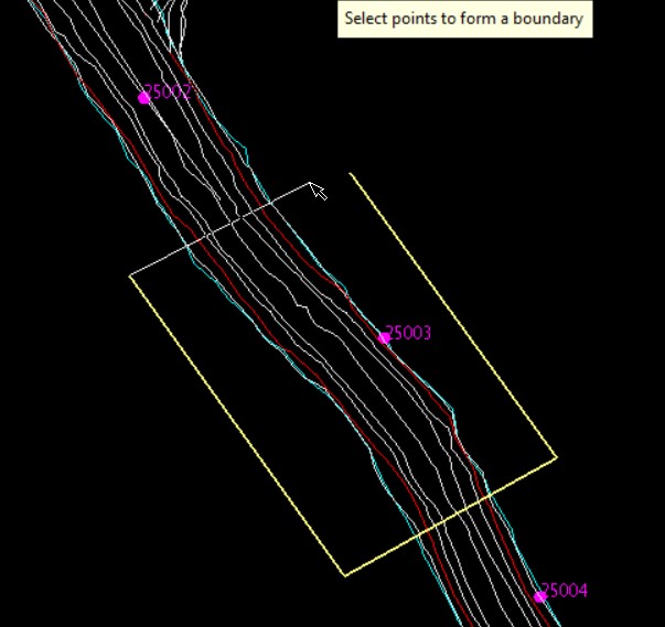 Once a bounding polygon has been the user is prompted to select a survey station (or user defined reference point) – this will be used as the reference point from which measurement marks will be calculated and created.
