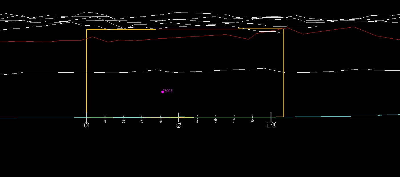 Once the panel inputs are finalized and ‘OK’ is selected the tool creates a mapping template, creates a 3-point section view from the template and creates incremented measurements away from the selected station.