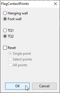Align into section view of the desired face using the SectionView tool. Select whether to flag hanging wall or foot wall points and the desired domain and then ‘OK’.