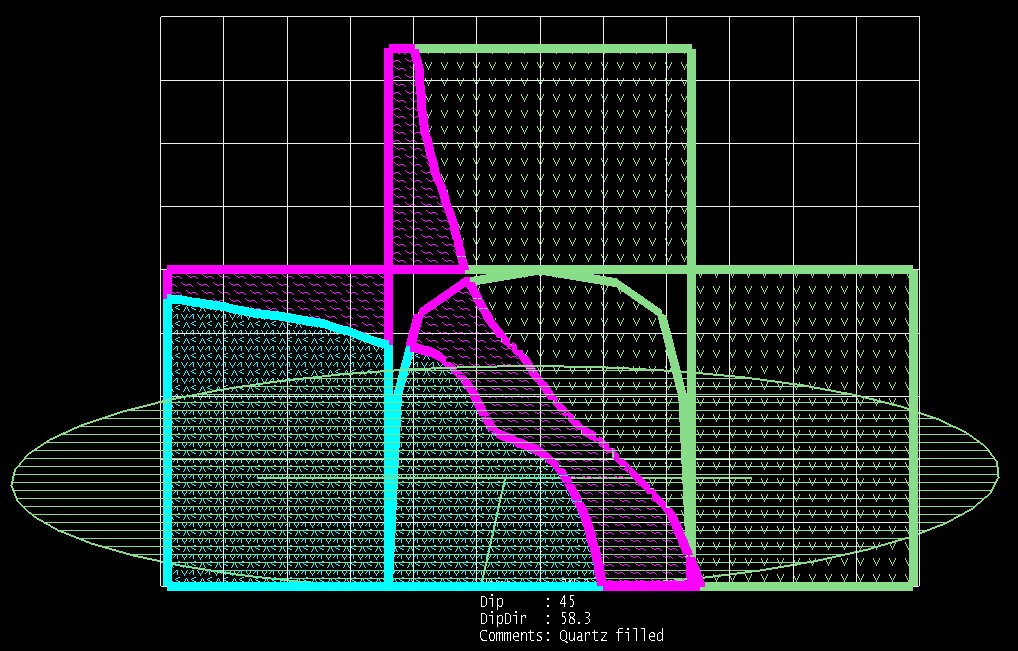 Allows viewing any currently loaded geological structures captured using the Face Mapper > Mapping > Digitise Structure tool as structural symbols and/or orientation halos.