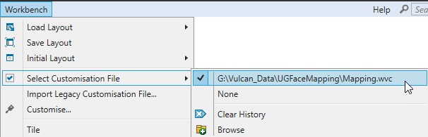 Alternatively, to select the right Customisation file, navigate to Workbench > Select Customisation File and either select or Browse and select the provided ‘Mapping.wvc’ file.