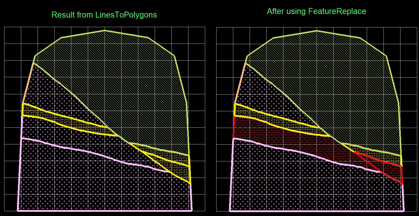 Then after running Lines To Polygons, simply use Feature Replace to adjust any features as required.