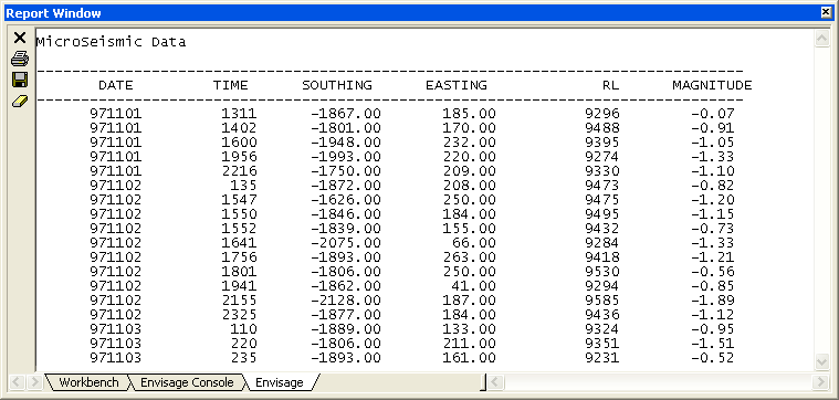 Use Inquire to generate a screen list of microseismic location and attribute data.Instructions