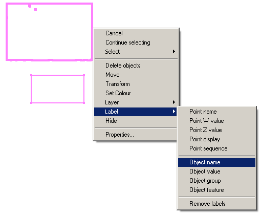 It is also possible to access this option through the Vulcan context menu. To do so, right-click on an object and select Label > Object name from the displayed context menu.