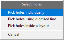On the Underground menu, point to Ring Design, and then click Delete Hole to display the Hole Picking dialog.