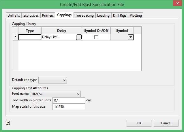 Use the Capping tab to create and define the contents of the cappings library. The Blast Design specification file will support up to 1,000 different capping types.