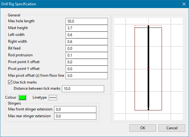 Use the Drill Rigs tag to create and define the contents of the drill rig library.