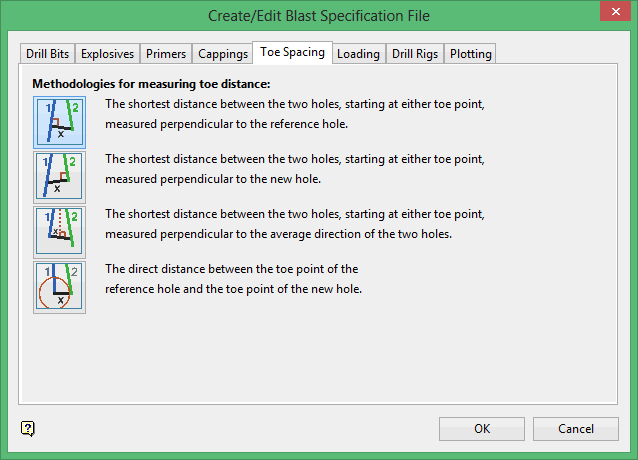 Use the Toe Spacing tab to nominate the method that will be used to calculate toe spacing.