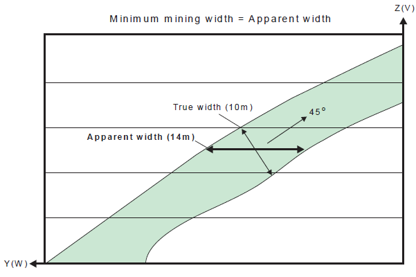 Apparent dip and width vs. True dip and width