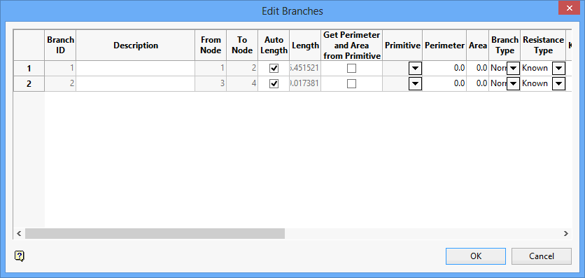 Use Edit All Branches to edit all of the branches in the current ventilation network.Instructions