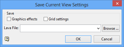 You can activate certain effects and display a grid by running a lava script. You can also choose to add the script to the project specification file (.dg1) start up parameters. Thus ensuring certain effects are activated and a grid displayed when Vulcan starts.